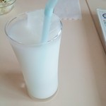 NIMTA - カレーセットのラッシー。最初はぬるめでトロトロ。氷が溶けるといい感じ。甘すぎず好き。
